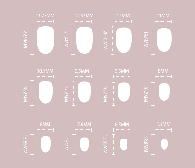 24 nails in 12 inclusive sizes