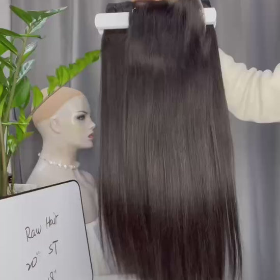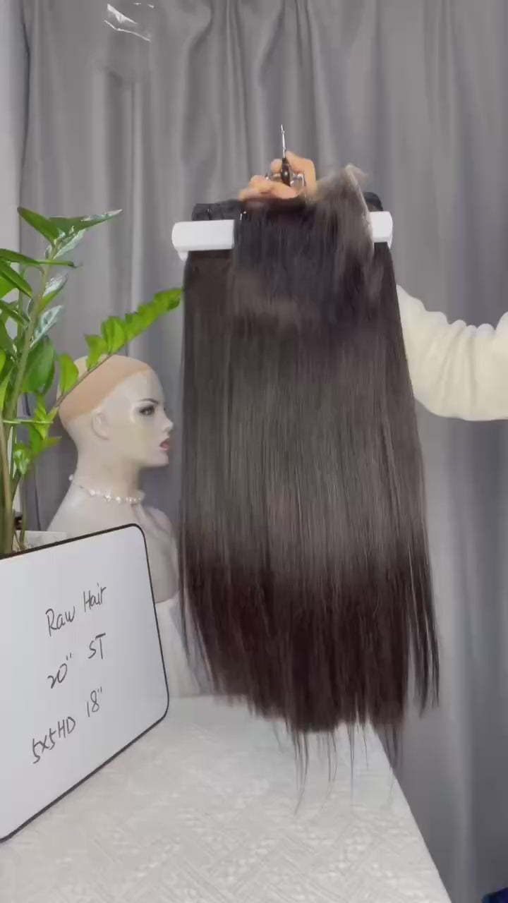 Transform your look with our premium double drawn raw straight human hair bundles paired with a 5x5 HD lace closure. This complete set delivers exceptional quality, natural beauty, and effortless versatility.
